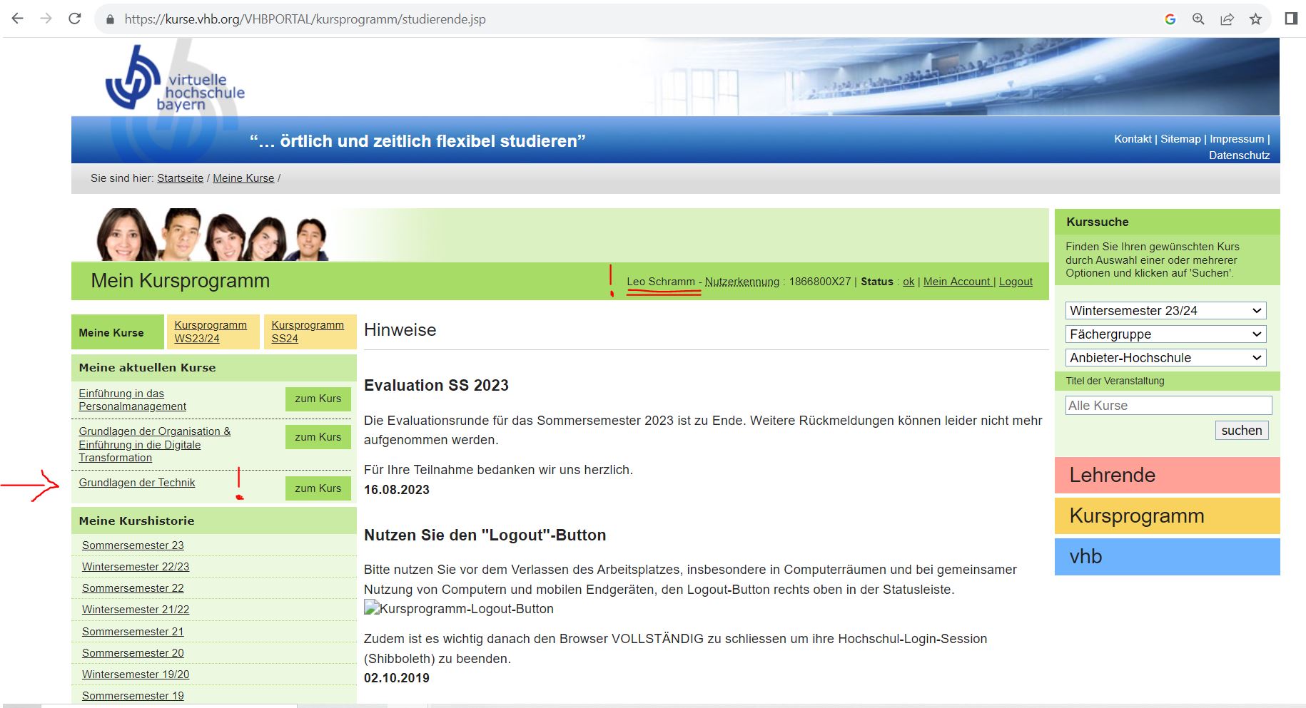 Zulassungsvoraussetzung: VHB-Anmeldung